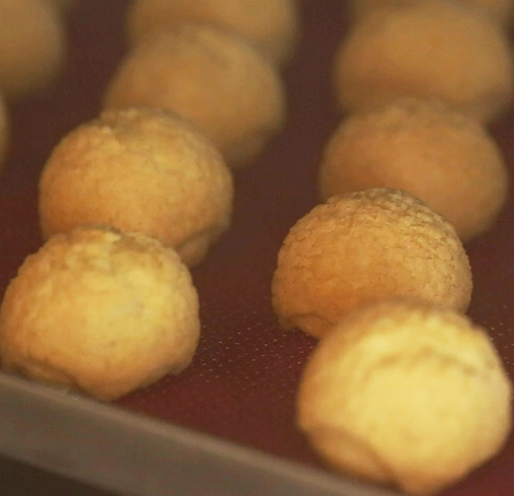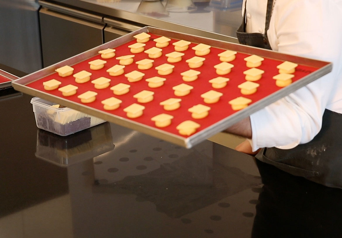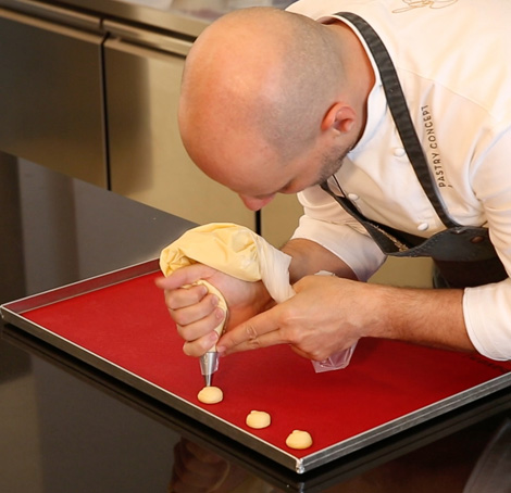 The chef’s advice: place a 2mm thick shortbread biscuit (made with Tenerum®, sugar and butter) on top of your cream puffs to make them swell even more during baking. This will keep the steam in, allowing your cream puffs to rise and puff out.